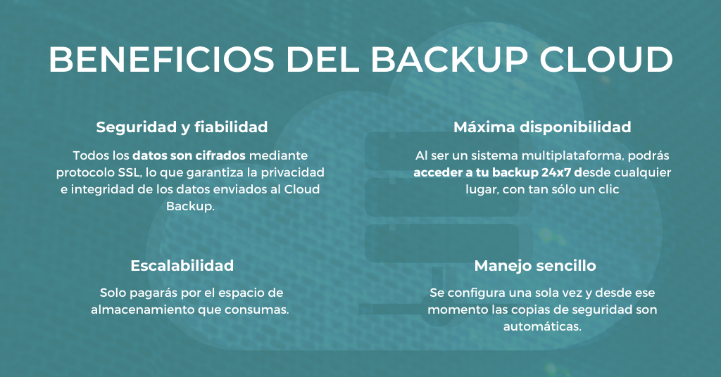 El uso de almacenamiento en la nube no solo garantiza que los datos estén seguros, sino que también permite una escalabilidad eficiente. Las soluciones de backup en la nube pueden adaptarse fácilmente a las necesidades crecientes de almacenamiento sin la necesidad de inversión en infraestructura física.