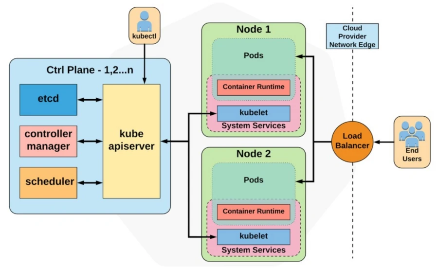 - API Server: Punto de entrada para todas las operaciones y solicitudes hacia el clúster.